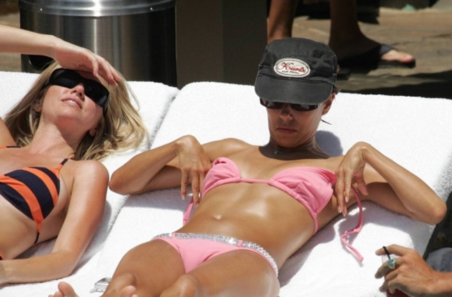 Με ένα μικροσκοπικό ροζ μπικίνι, η Εύα Λονγκόρια έκανε πολλά κεφάλια να γυρίσουν στην πισίνα του ξενοδοχείου Roosevelt στο Χόλιγουντ.