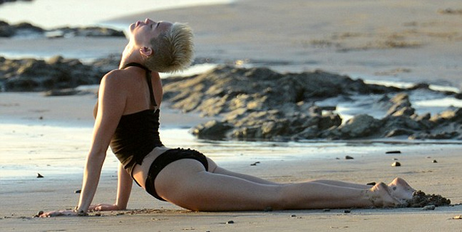 Ενώ οι υπόλοιποι παραθεριστές απολάμβαναν χαλαροί την τροπική παραλία, η 20χρονη Miley ανέδειξε, εκτός από το πόσο ευεργετική είναι η γιόγκα, και το καλογυμνασμένο σώμα της φορώντας ένα μαύρο στράπλες μπικίνι.