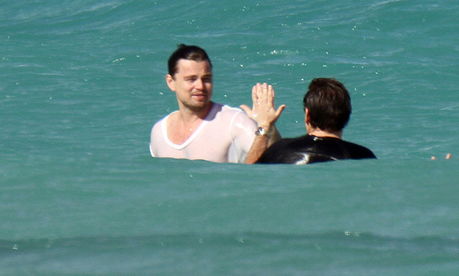 Μαζί με τον DiCaprio ήταν ο συνάδελφός του Jonah Hill, ενώ ανάμεσά τους απαθανατίστηκε μία τόπλες κοπέλα το όνομά της οποίας αλλά και η σχέση της με τους δυο ηθοποιούς δεν έχει γίνει γνωστή.
