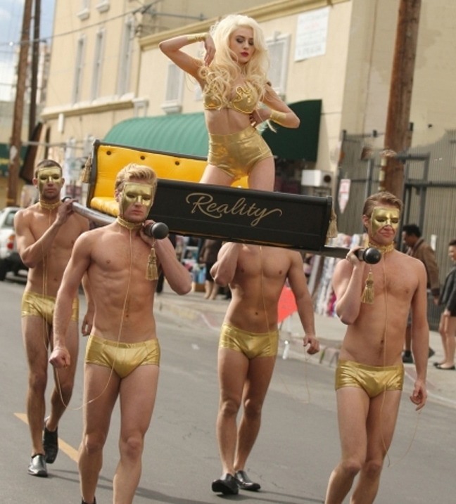 Η 18χρονη τηλεπερσόνα, την είδε Κλεοπάτρα, και εθεάθη με ένα χρυσό εσώρουχο με ημίγυμνους άντρες να την κουβαλάνε πάνω σε ένα κρεβάτι στους δρόμους του Λος Άντζελες.