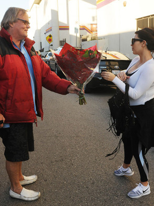 Τα πρώτα λουλούδια ανήμερα της γιορτής του Αγίου Βαλεντίνου πήρε χτες η εγκυμονούσα Kim Kardashian την ώρα που αποχωρούσε από το γυμναστήριο.