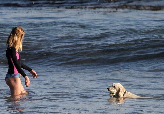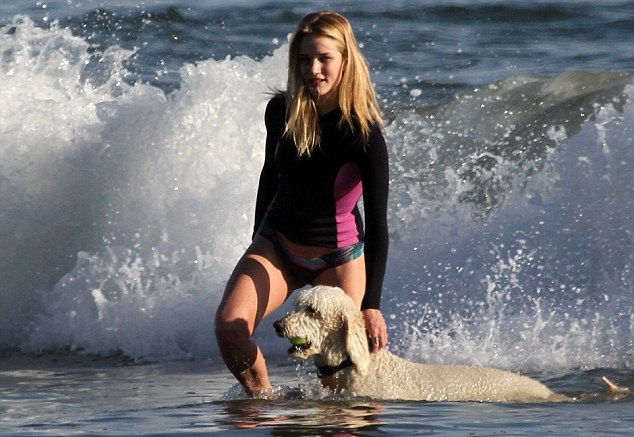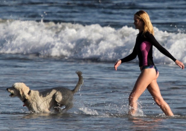 Και κορμάρα και με ευαισθησίες. Η Rosie Huntington-Whiteley βοήθησε ένα σκυλάκι να βγει στην ακτή, στην περίφημη παραλία του Μαλιμπού στην Καλιφόρνια.