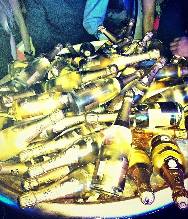 Μεγάλοι πρωταγωνιστές της βραδιάς, ωστόσο, ήταν τα 100 μπουκάλια ακριβής σαμπάνιας, τα οποία φωτογραφήθηκαν από καλεσμένο και η Paris έκανε retweet τη φωτογραφία γράφοντας: