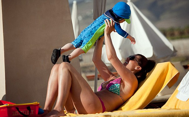 Η 29χρονη φόρεσε το μπικίνι με την κοιλιά της να είναι ελάχιστα φουσκωμένη ενώ απήλαυσε τρυφερές οικογενειακές στιγμές με τους γιους της.