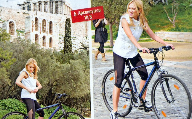 «Το ποδήλατο είναι ο νέος μου έρωτας. Το πήρα φέτος και από το φθινόπωρο, όποτε έχει καλό καιρό το χρησιμοποιώ κυρίως τα Σαββατοκύριακα». Σε μια από αυτές τις βόλτες η παρουσιάστρια απαθανατίστηκε από τον φωτογραφικό φακό του OK να κάνει βόλτες στο κέντρο της Αθήνας με φόντο την Ακρόπολη.