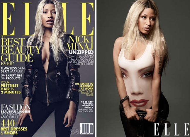 Στο εξώφυλλο του αμερικανικού γυναικείου περιοδικού «Elle» ποζάρει η εκκεντρική τραγουδίστρια Nicki Minaj, φορώντας ένα μαύρο δερμάτινο τζάκετ και μαύρο κολάν.