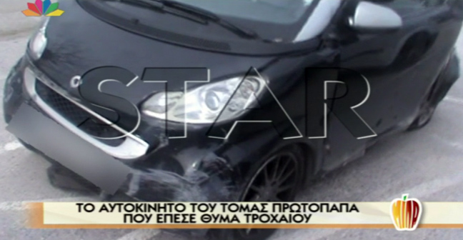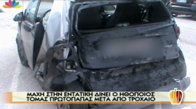 Εικόνες του κατεστραμμένου αυτοκινήτου το οποίο οδηγούσε ο Τόμας Πρωτόπαπας προέβαλε η εκπομπή «Mίλα» της Τατιάνας Στεφανίδου.