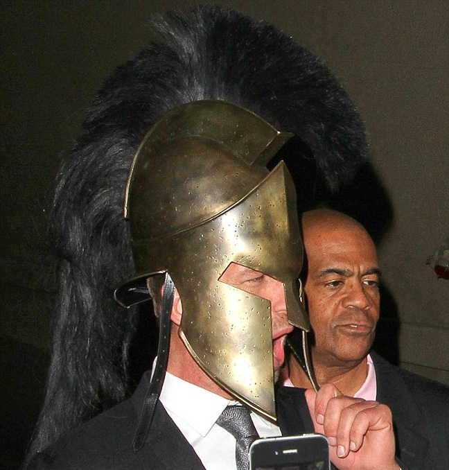 Άλλος θαυμαστής ζήτησε από τον Gerard να φορέσει περικεφαλαία και εκείνος δεν του χάλασε το χατίρι.