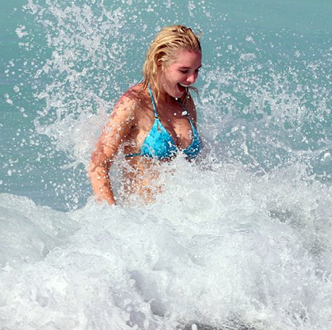 Η Βρετανίδα ηθοποιός φόρεσε έκανε τις βουτιές της στην παραλία ενώ καταγάλανα μάτια της έλαμπαν κάτω από το φως του ήλιου.