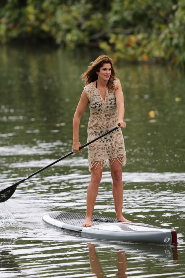 Υπήρξε η γυναίκα σύμβολο στον κόσμο της μόδας και την ακολουθεί πιστά όχι μόνο στην εμφάνιση αλλά και στα αθλήματα που επιλέγει για να γυμναστεί. Έτσι η Cindy Crawford που επέλεξε για τις διακοπές της τη Χαβάη, έκανε ταυτόχρονα γυμναστική επιδιδόμενη στο άθλημα stand up paddle.