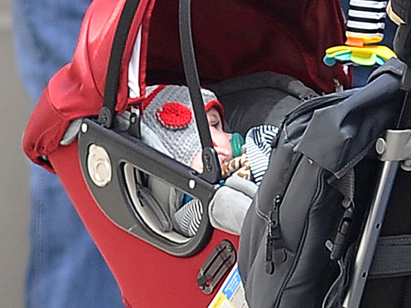Ο μικρούλης Noah, που είναι έξι μηνών, βγήκε βόλτα στο κόκκινο καρότσι του και οι φωτογράφοι κατάφεραν να εξασφαλίσουν μία έστω μακρινή εικόνα του.
