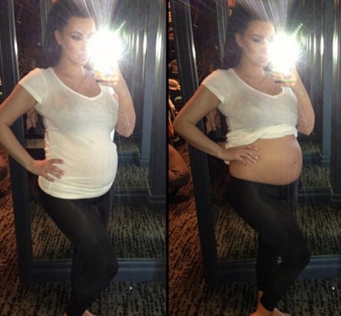 H Kim Kardashian είναι πλέον έξι μηνών έγκυος. Στάθηκε μπροστά στον καθρέφτη και έβγαλε αυτή τη φωτογραφία την οποία ανέβασε στο Twitter, εκφράζοντας για άλλη μία φορά τη χαρά της που θα γίνει μαμά.