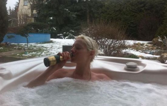 Εθεάθη μαζί με τον αγαπημένο της Κριστιάν Καρποζήλο να απολαμβάνουν σαμπάνια μέσα στη ζεστά νερά του τζακούζι τους.