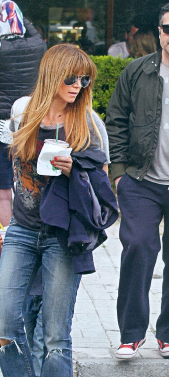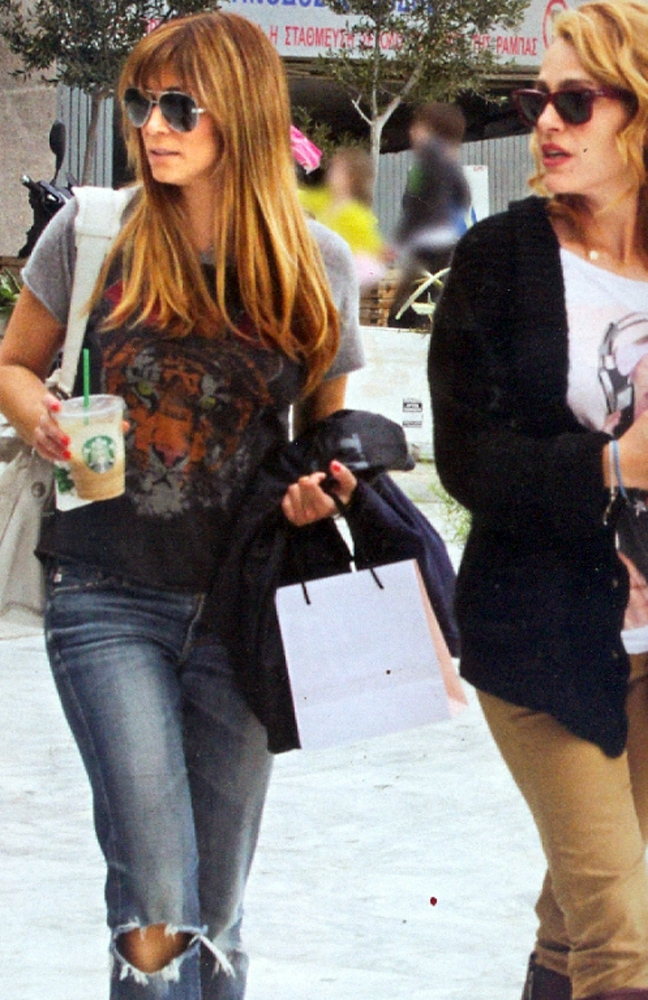 Ο φωτογραφικός φακός του Hello τους απαθανάτισε να περπατάνε σε κεντρικό δρόμο της περιοχής και να κρατάνε τσάντες με ψώνια. Οι τρεις τους πέρα από πολύ καλοί φίλοι είναι και κουμπάροι, μιας και τόσο η ηθοποιός όσο και ο δημοσιογράφος, έχουν βαφτίσει τον μικρό γιο της τραγουδίστριας, Αλέξανδρο.