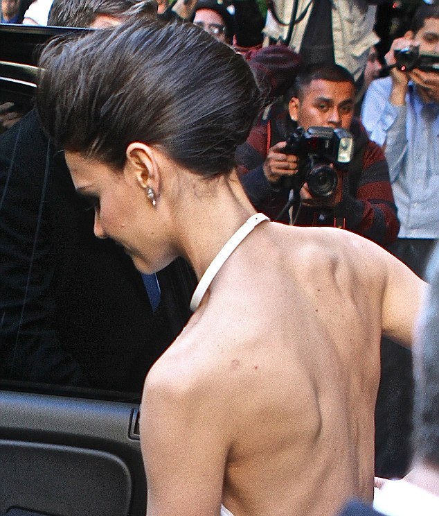 Φαίνεται όμως ότι τώρα τελευταία η Katie Holmes το έχει παρακάνει, καθώς η χτεσινή εμφάνιση της νεαρής ηθοποιού στη Νέα Υόρκη αποκάλυψε ότι μάλλον έχει χάσει αρκετά κιλά, με αποτέλεσμα να αρχίσουν να φαίνονται έντονα τα κόκκαλα στην πλάτη της!