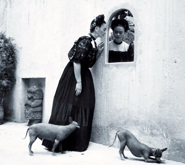Η Μεξικάνα ζωγράφος Φρίντα Κάλο μαζί με τα δύο σκυλιά της, που ανήκουν στην άτριχη μεξικανική ράτσα Xoloitzcuintli (μην προσπαθήσετε να το προφέρετε – άδικος κόπος!).