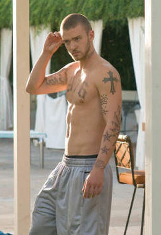 Τζάστιν Τιμπερλέικ: Και καλό χριστιανόπουλο ο Τζάστιν Τιμπερλέικ, ο οποίος αντί να φορέσει έναν σταυρό, τον έκανε τατουάζ. Έχει κάνει επίσης την ημερομηνία γέννησης του (1976), αστέρια και ένα σωρό ακόμη «μουτζούρες».