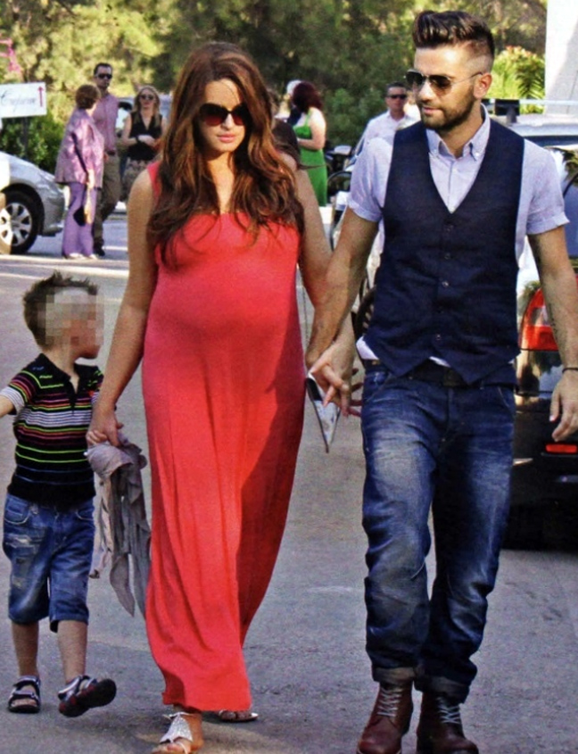 Η παρουσιάστρια φορούσε ένα αέρινο κόκκινο φόρεμα που διέγραφε την φουσκωμένη κοιλιά.