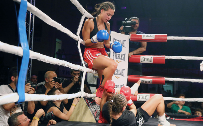 Στο κλειστό γήπεδο μπάσκετ της Γλυφάδας στο πλαίσιο του fight show «The battle», η Μαριάννα Καλλέργη κατάφερε να βγάλει νοκ άουτ τη Γερμανοτουρκάλα αντίπαλό της, Meryem Uslu, και να στεφθεί νικήτρια.