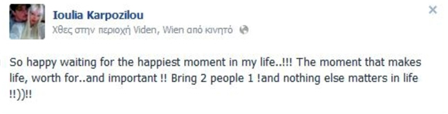 Σε καθημερινή βάση μέσω της προσωπικής της σελίδας ενημερώνει τους φίλους της για την πιο ευτυχισμένη μέρα της ζωής της.