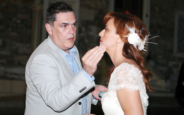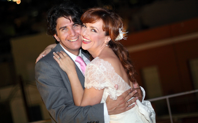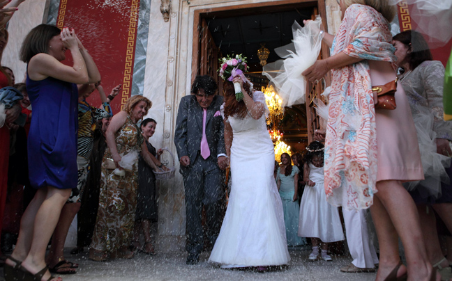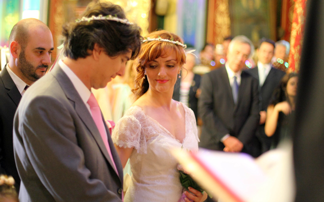 Η Αλίνα Κοτσοβούλου και ο Μάριος Κουνέλης ενώθηκαν με τα ιερά δεσμά του γάμου, ύστερα από δύο χρόνια σχέσης, στο ναό του Αγίου Νικολάου στη Σύρο το περασμένο Σάββατο.