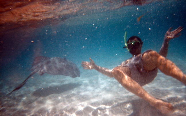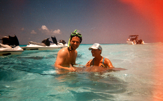 Στα εξωτικά νησιά Cayman της Καραϊβικής βρέθηκαν η Καλομοίρα και ο σύζυγός της Γιώργος και κολύμπησαν στα σμαραγδένια νερά της.