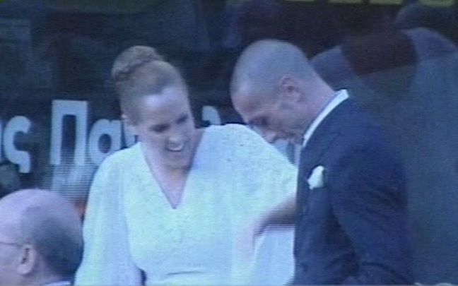 Ο Ιταλός αμυντικός του ΠΑΟΚ παντρεύτηκε με τη γλυκιά ηθοποιό, Έλενα Ασημακοπούλου, σήμερα το απόγευμα στο δημαρχείο Αγίου Στεφάνου. Ο γάμος τελέστηκε σε στενό οικογενειακό και φιλικό κύκλο ενώ το ζευγάρι έπλεε σε πελάγη ευτυχίας. Σε λίγο καιρό άλλωστε περιμένουν τη γέννηση της κορούλας τους καθώς η Έλενα διανύει τον έβδομο μήνα της εγκυμοσύνης της!