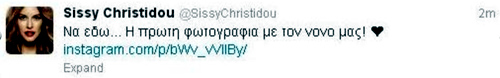 Η ίδια αποκάλυψε πως θα είναι νονός του δεύτερου γιου της ο φίλος και πρώην συνεργάτης της, Παύλος, ο οποίος έχει βαφτίσει και τον γιο της Έλλης Κοκκίνου.