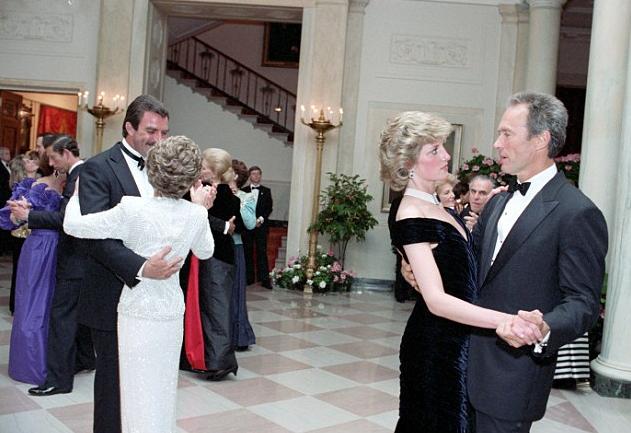 Χόρεψε με τον «Dirty Harry» Κλιντ Ίστγουντ. Με τον Τόμ Σέλεκ και τον Τζον Τραβόλτα αλλά και τον πρόεδρο Ρίγκαν. Ήταν το 1985 και η 24χρονη τότε πριγκίπισσα Νταϊάνα, αμήχανη μπροστά στους σταρ, αιχμαλώτιζε τα βλέμματα στο Λευκό Οίκο με την μαύρη τουαλέτα Victor Edelstein που πουλήθηκε το Μάρτιο έναντι 240.000 λιρών.