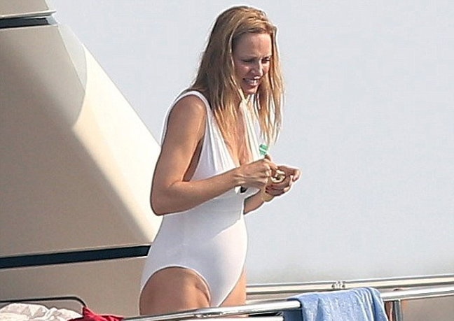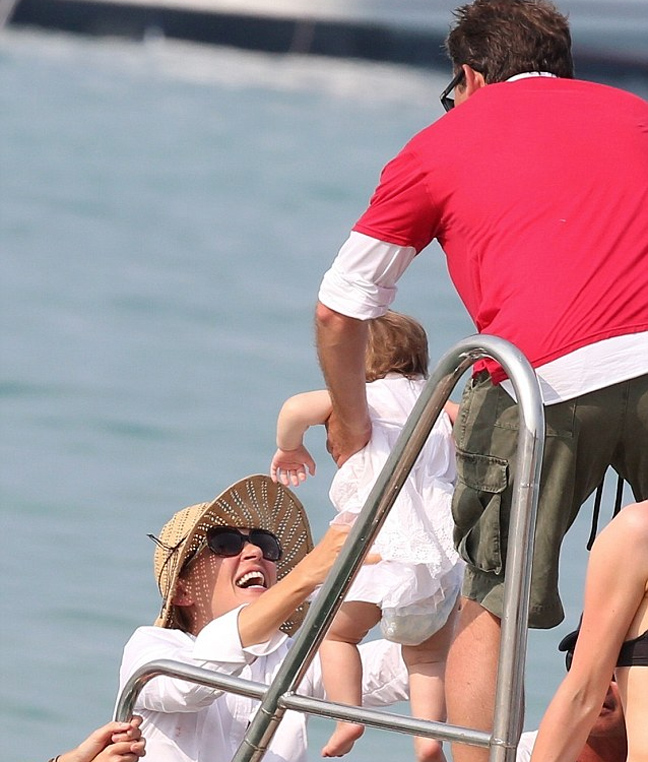H ηθοποιός που φάνηκε να είναι εξαιρετικά ανέμελη βούτηξε από το σκάφος φορώντας ένα ολόλευκο ολόσωμο μαγιό αποδεικνύοντας ότι δεν δυσκολεύτηκε ιδιαίτερα να χάσει τα κιλά της εγκυμοσύνης της.