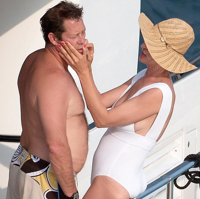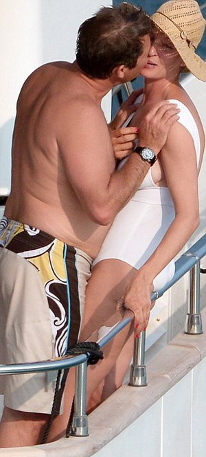 Το ζευγάρι εθεάθη να ανταλλάσσει τρυφερά φιλιά και χάδια σε πολυτελές σκάφος στην αποβάθρα στη διάρκεια διακοπών στο Σαν Τροπέ.