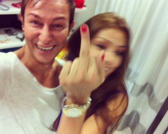 Οι δυο τους αντάλλαξαν φιλιά ενώ τράβηξαν και μια φωτογραφία στην οποία η Βάλια Κακούτη κάνει μια άσεμνη χειρονομία.