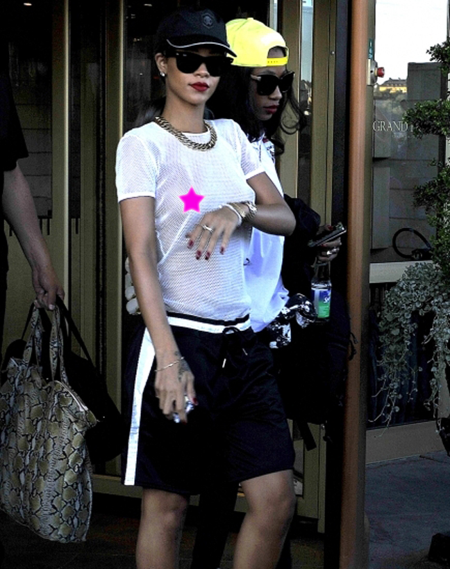 Γιατί μπορεί η Rihanna να εμφανίστηκε με μία μαύρη αθλητική βερμούδα και ένα δικτυωτό λευκό μπλουζάκι που επέτρεπε να φανεί το στήθος της, το θέμα όμως είναι ότι τα συνδύασε ανεπιτυχώς με ψηλοτάκουνα πέδιλα…