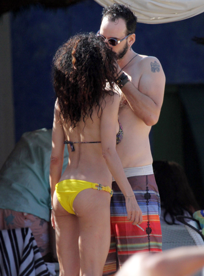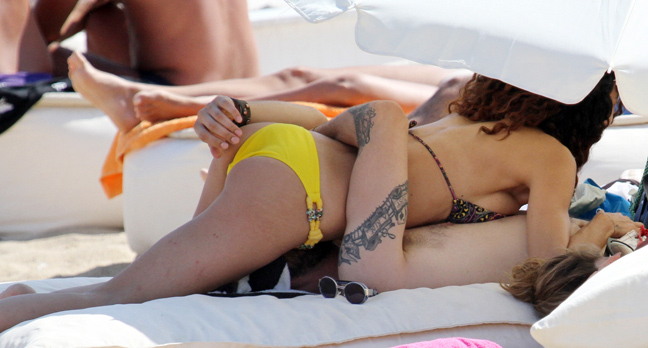 Ο φωτογραφικός φακός τους απαθανάτισε να ανταλλάσσουν τρυφερά φιλιά και αγκαλιές μεταξύ τους ενώ η ηθοποιός δεν δίστασε ακόμη και να ξαπλώσει πάνω στον αγαπημένο της μπροστά στα μάτια των λουόμενων.