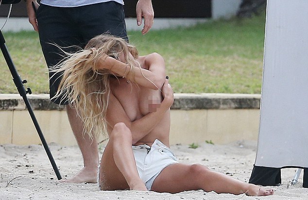 Το 26χρονο μοντέλο δοκίμασε διάφορες πόζες, όμως λίγο η προσπάθειά της να κρύψει το στήθος της, λίγο ο αέρας που της ανακάτευε τα μαλλιά… και το «κακό» δεν άργησε!