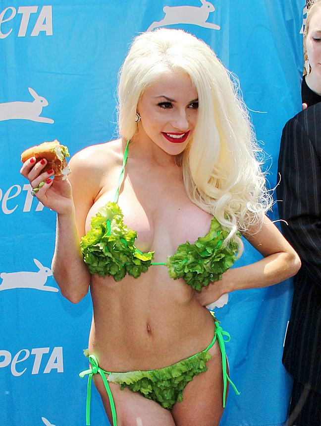Δεν έχει ποτέ διαστάσει να μοιραστεί τα κάλλη της. Δεν αποτελεί λοιπόν έκπληξη που η Courtney Stodden κάλυψε τα… βασικά με φύλλο όχι συκής αλλά μαρουλιού και βγήκε στην Hollywood Boulevard για να ευαισθητοποιήσει τους πολίτες για τη χορτοφαγία, σε συνεργασία με την οργάνωση ΡΕΤΑ.