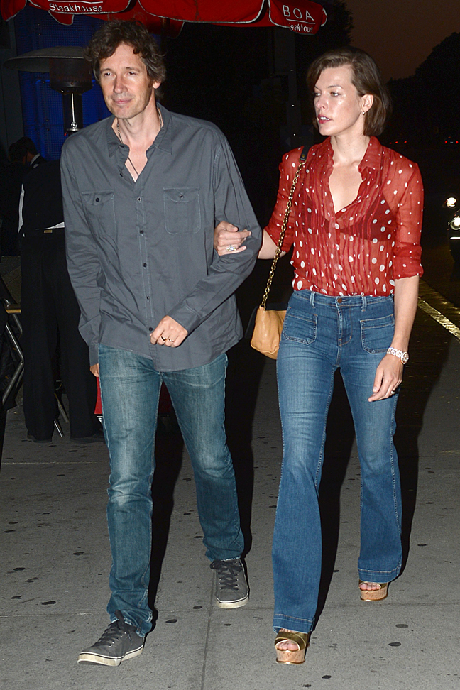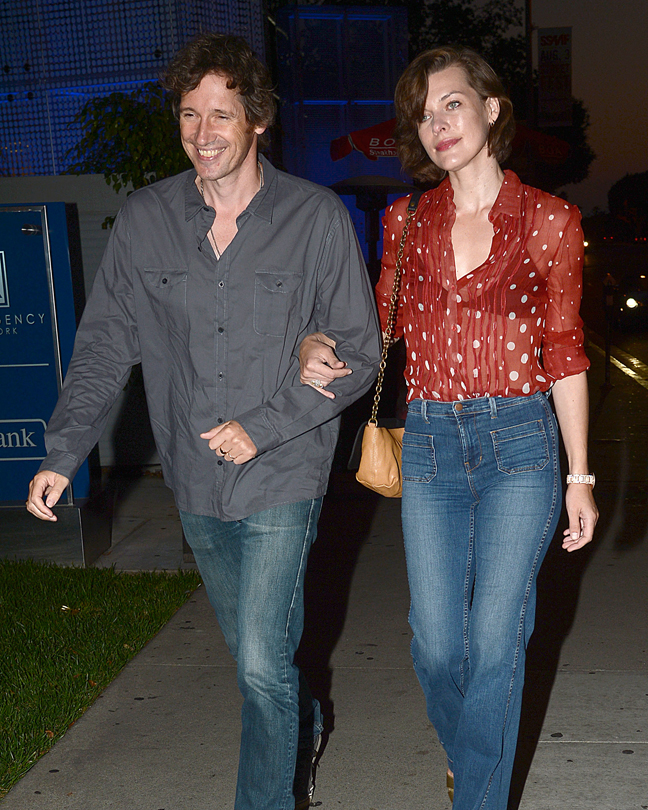 Ένα κόκκινο see through πουκάμισο επέλεξε η Milla Jovovich στην βραδινή της έξοδο με τον σύζυγό της Paul Anderson στο Χόλιγουντ.