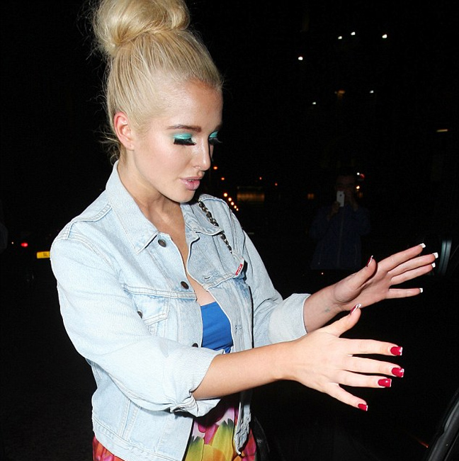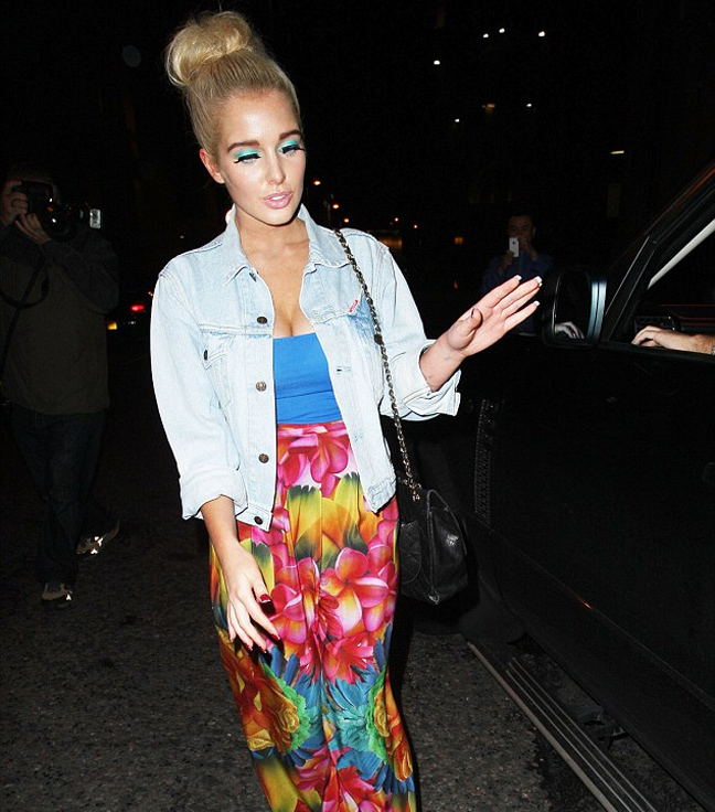Δεν πρέπει να υπάρχει κανένα χρώμα από όλη τη χρωματική παλέτα που να λείπει από αυτή την εμφάνιση της Helen Flanagan. Και μόνο η παντελόνα της τα περιλαμβάνει σχεδόν όλα αλλά εκείνη είπε να συμπληρώσει το «ελαφρύ» λουκ της με έντονη τιρκουάζ σκιά στα μάτια.