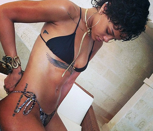 Για τις υψηλές θερμοκρασίες της Τετάρτης η Rihanna επέλεξε ένα μικροσκοπικό μπικίνι και δεν παρέλειψε να ανεβάσει φωτογραφία και από την οπίσθια πλευρά της.