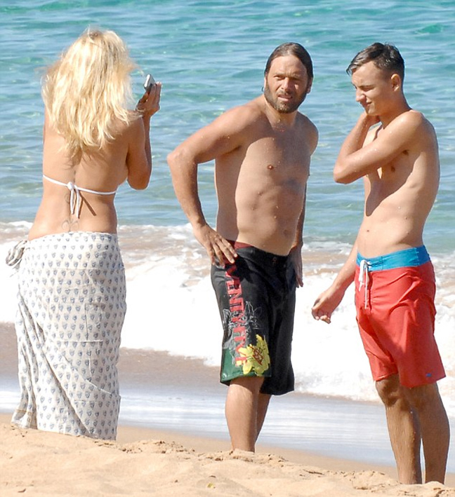Οι τρεις τους μετά τη γυμναστική απόλαυσαν το μπάνιο σε παραλία της Χαβάης, ενώ η Pamela Anderson φάνηκε να μην είναι και στα φόρτε της.