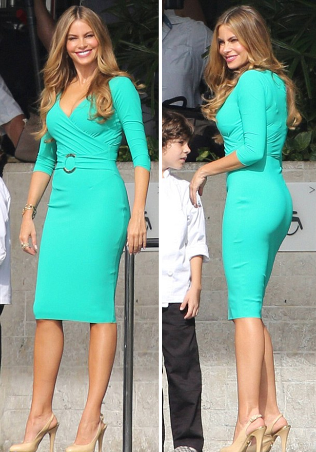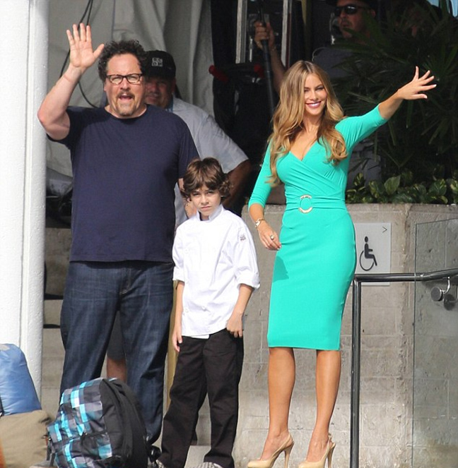 Η Sofia Vergara εμφανίστηκε στα γυρίσματα της ταινίας «Chef» στο Μαϊάμι με ένα κολλητό τυρκουάζ φόρεμα και ψηλοτάκουνες γόβες στο πλευρό των συμπρωταγωνιστών της.