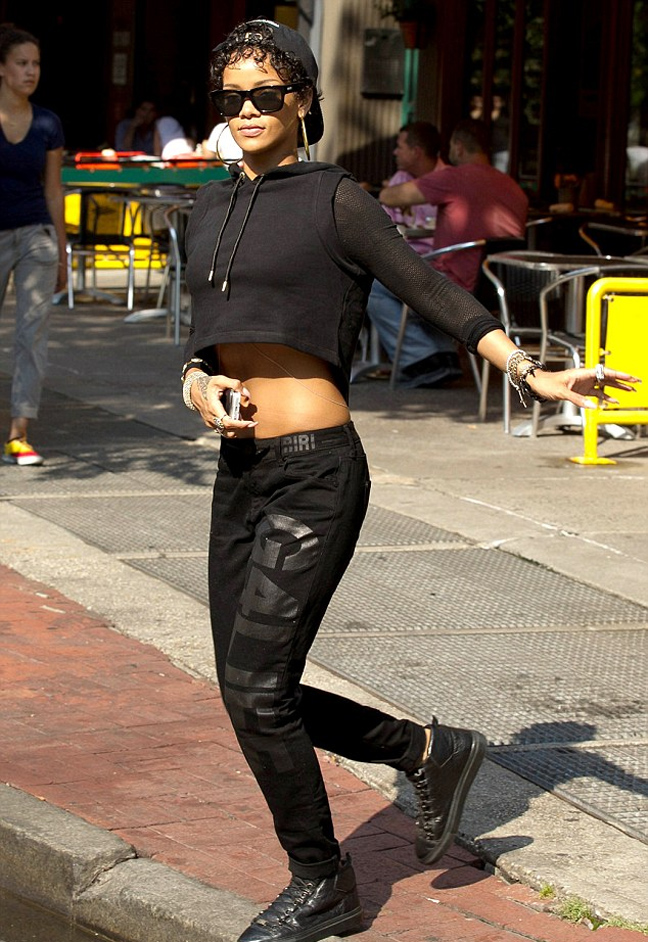Ο φωτογραφικός φακός, σοκαρισμένος, τη συνέλαβε ντυμένη να φεύγει από εστιατόριο του West Village, φορώντας μαύρο παντελόνι, αθλητικά παπούτσια και ένα μαύρο φούτερ κοντό, που άφηνε ακάλυπτη την σέξι κοιλιά της.