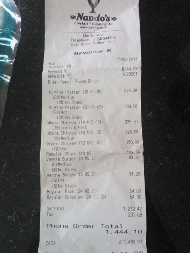 Συγκεκριμένα, η διεθνούς φήμης σταρ παρήγγειλε από γνωστή αλυσίδα 48 ολόκληρα κοτόπουλα, αξίας 1.400 στερλινών, όπως αποδεικνύει άλλωστε αντίγραφο της απόδειξης που ανέβηκε στο διαδίκτυο.