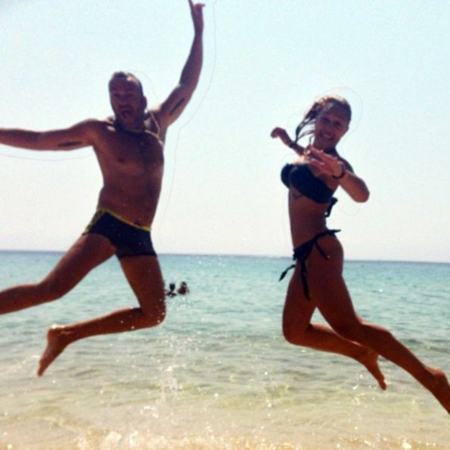 Δεν έχασε βέβαια την ευκαιρία να απολαύσει τη θάλασσα στο νησί και φωτογραφήθηκε στην παραλία με έναν εκ των πρωταγωνιστών της παράστασης Τόνυ Δημητρίου.