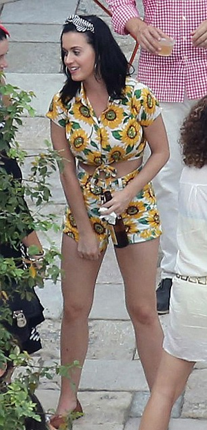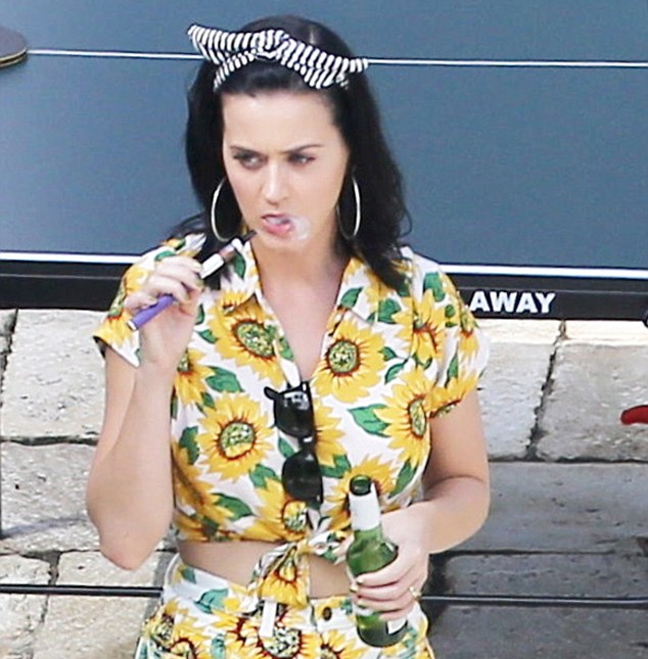 Με ρετρό ντύσιμο που αποτελείτο από ένα φλοράλ σορτσάκι και πουκάμισο η Katy Perry εθεάθη να διασκεδάζει έχοντας στο ένα χέρι το ηλεκτρονικό τσιγάρο και στο άλλο ένα μπουκάλι μπίρα.