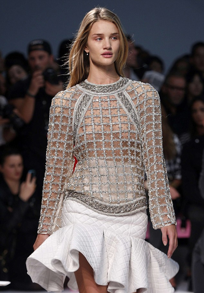 Πολλά λέγονται για το πώς πραγματικά θα έδειχναν πολλές από τις λαμπερές και διάσημες γυναίκες της σόουμπιζ χωρίς ίχνος μακιγιάζ. Η 26χρονη Rosie Huntington-Whiteley εμφανίστηκε έτσι ακριβώς, χωρίς μακιγιάζ, στην επίδειξη του Balmain στο Παρίσι, συνδυάζοντας μάλιστα την εμφάνισή της με ένα πολύ αποκαλυπτικό ρούχο από τη συλλογή Άνοιξη/ Καλοκαίρι 2014.