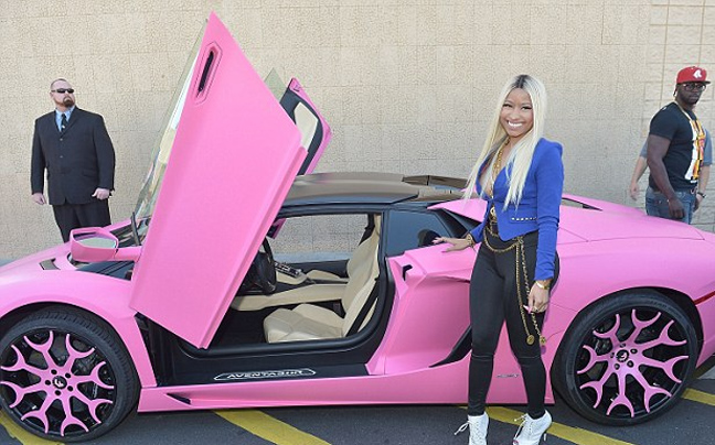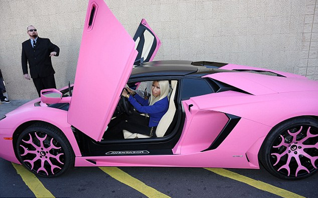 Δεν ξέρει για τι να πρωτοκλάψει κανείς με τη φωτογραφία αυτή. Για τη Lamborghini Aventador που της έμελλε να βαφτεί… τσιχλόφουσκα, για την αισθητική που χάθηκε στην εμφάνιση της Nicki Minaj…