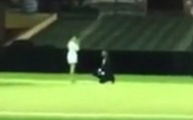 Η στιγμή που ο Kanye West έκανε γονατιστός, στο γήπεδο «AT&T Park», πρόταση γάμου στην Kim Kardashian καταγράφηκε σε βίντεο και πλέον κάνει το γύρο του κόσμου.