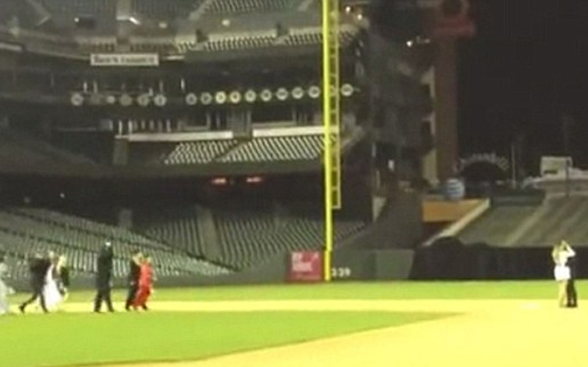 Η μαγική στιγμή για το αρραβωνιασμένο διάσημο ζευγάρι ήταν την Δευτέρα, μέρα των γενεθλίων της Κιμ που έκλεισε τα 33 της χρόνια, στο γήπεδο «AT&T Park» του Σαν Φραντσίσκο.