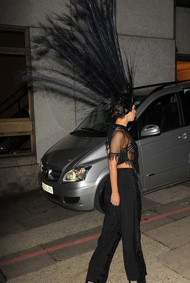 Έτσι και την Τρίτη το βράδυ κατά την έξοδό της στο The Graham Norton show του Λονδίνου, εμφανίστηκε με φτερά μήκους… 1,5 μέτρων στο κεφάλι.